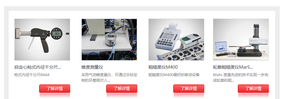 產(chǎn)品中心界面有清晰的產(chǎn)品類目:通用量具,在線測量,精密設(shè)備,計(jì)量設(shè)備,理化試驗(yàn)等,每款產(chǎn)品